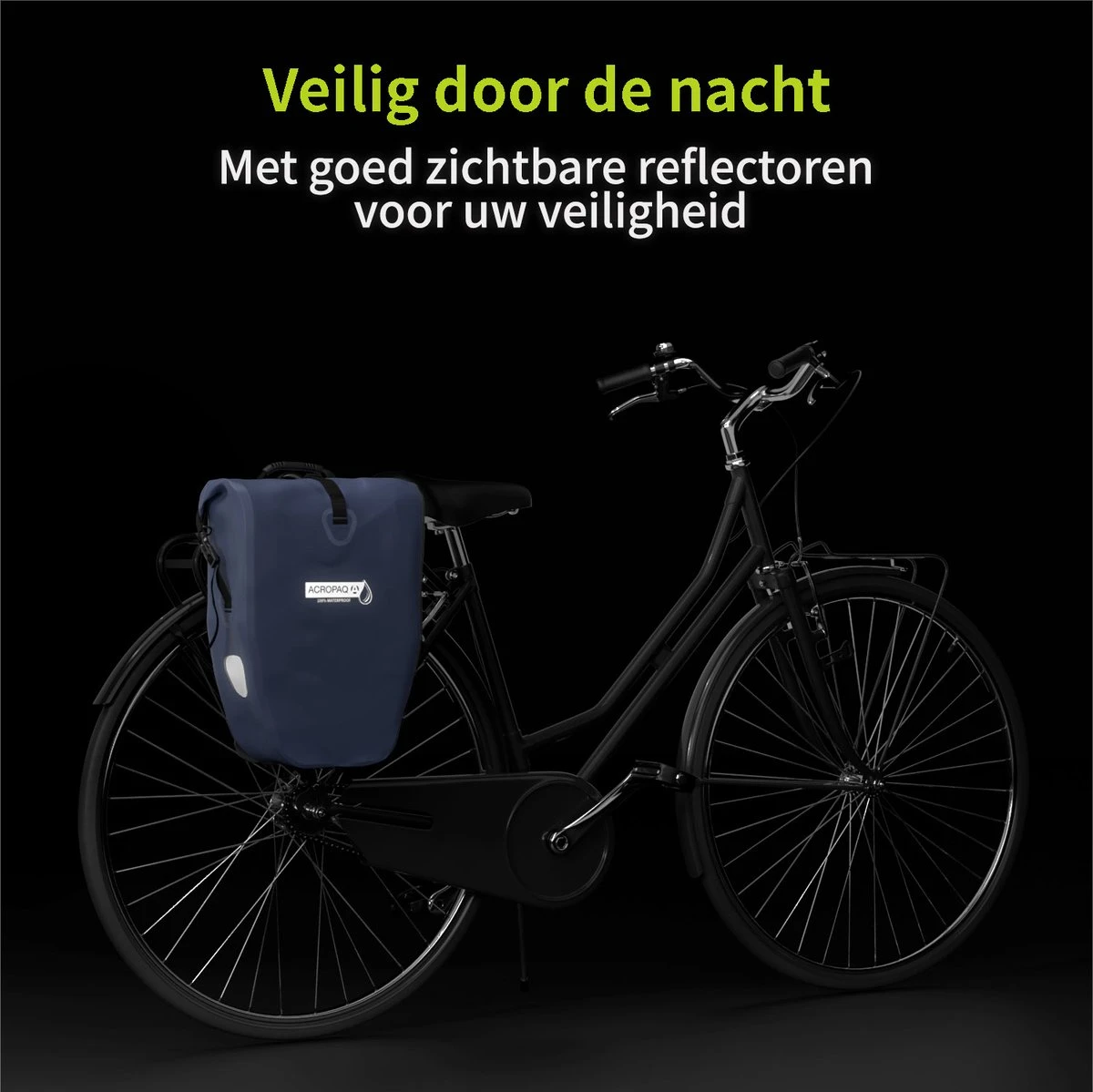 Dankzij de reflectoren aan 3 zijden zorgt de fietstas bovendien ook voor extra veiligheid in het donker.