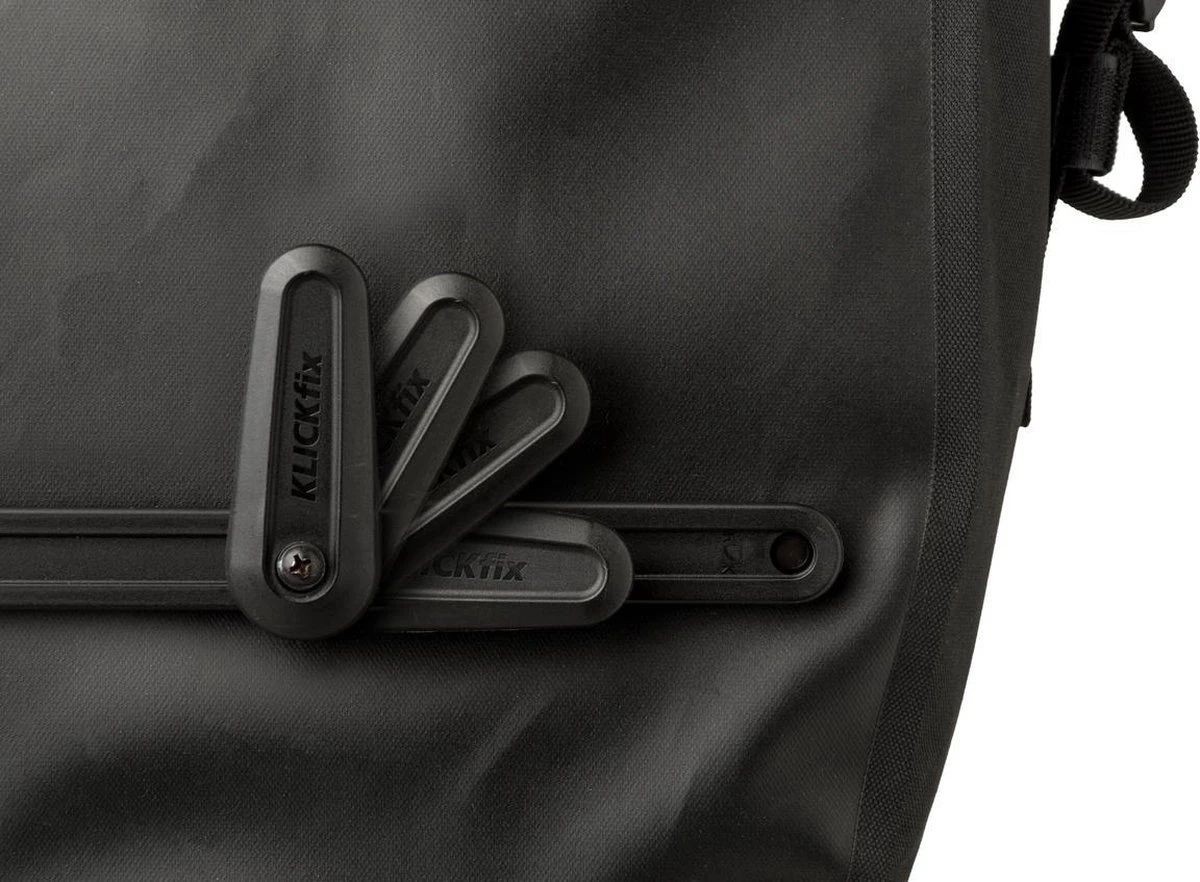De Shelter Clean waterproof fietstas kan zowel op een voor- als achter drager gemonteerd worden door middel van de KLICKfix Module Rail en verstelbare haak. Dit vormt een solide bevestiging aan de fiets die rammelen of slingeren tegengaat. Aan de binnenzijde heeft de tas twee compartimenten zodat bagage goed georganiseerd meegenomen kan worden.