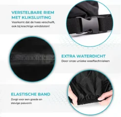 De hoes is wind- en waterdicht doordat de binnenzijde gecoat is en de buitenzijde voorzien is van thermisch gelaste naden. Doordat de fietshoes gemaakt is van stevig 420D Oxford materiaal kan jouw geliefde tweewieler alle weersomstandigheden aan! Wordt er hagel, sneeuw of regen verwacht? Jouw fiets is veilig. Maar ook beschermt de hoes jouw fiets tegen de zon, vorst en de wind. Ook bij krachtige stormbuien blijft de hoes intact en jouw fiets ongeschonden.
