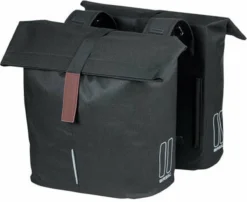 De Basil City is een modieuze dubbele fietstas met genoeg ruimte voor je boodschappen. Uitgevoerd in een zwarte kleur en geschikt voor bevestiging achterop je (elektrische) fiets.