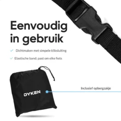Staat jouw fiets of scooter noodgedwongen buiten? Bescherm je stalen ros tegen de elementen met de fietshoes van Dyken. Vervaardigd uit ultrasterk 300D Oxford materiaal, zodat jouw fiets of scooter altijd en overal optimaal is beschermd.