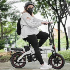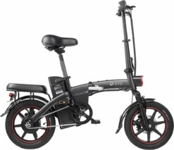 De DYU A5 eBike is gebouwd op een groter ultralicht frame van aluminiumlegering met een draagvermogen van 120 kg en een 3-traps ultracompacte vouwmogelijkheid. De A5 is uitgerust met een handige verwijderbare lithiumbatterij voor eenvoudig snel opladen.