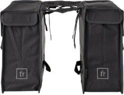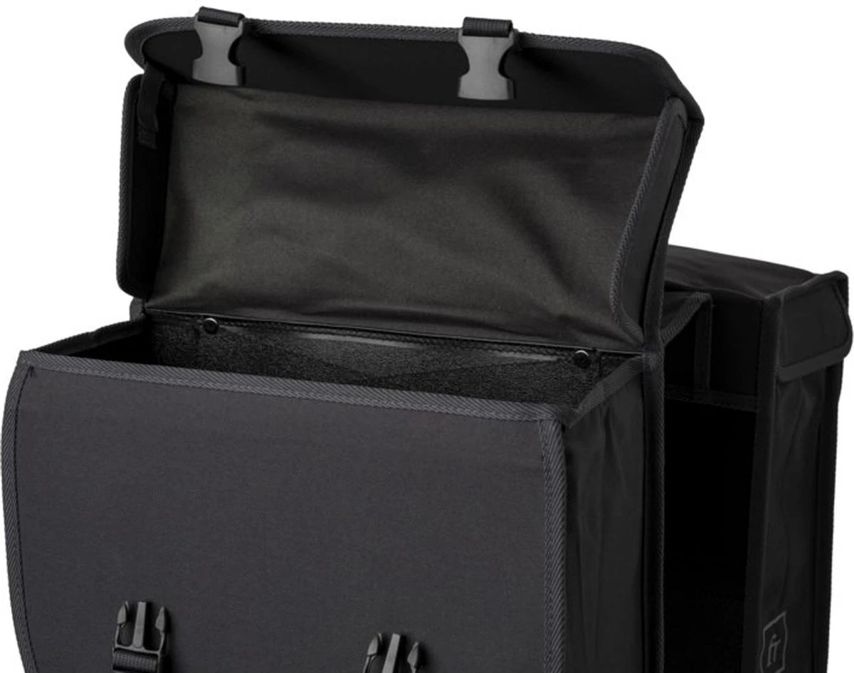 De FastRider Hybride Dubbele Fietstassen zijn speciaal ontwikkeld voor dagelijks gebruik op de fiets. Met zijn inhoud van 26 en 35 liter kan je met gemak al je spullen meenemen. Daarnaast zit deze tas nooit in de weg tijdens het fietsen, de afgeschuinde kanten zorgen ervoor dat hij niet in de weg zit tijdens het trappen. Gemaakt van Gerecycled Polyester is deze tas zeer stevig en hij houdt een kleine regenbui buiten dankzij de waterafstotende coating en de regenoren.