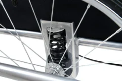 De fietskar is voorzien van een schokbreker en luchtbanden wat het rijcomfort verhoogt. Tevens is de voetenruimte wat lager gelegen zodat je kind comfortabel kan zitten en het eventuele vuil dat aan schoenen zit niet op het zitgedeelte komt.