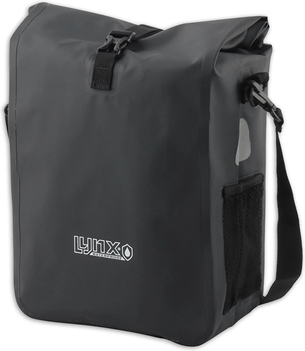 Deze Lynx pakaftas is een multifunctionele fietstas om aan jouw bagagedrager te bevestigen. Je hangt de tas aan de haakjes stevig vast. Met de gelaste naden is de tas geschikt voor intensief gebruik en daarnaast ook nog eens volledig waterdicht.