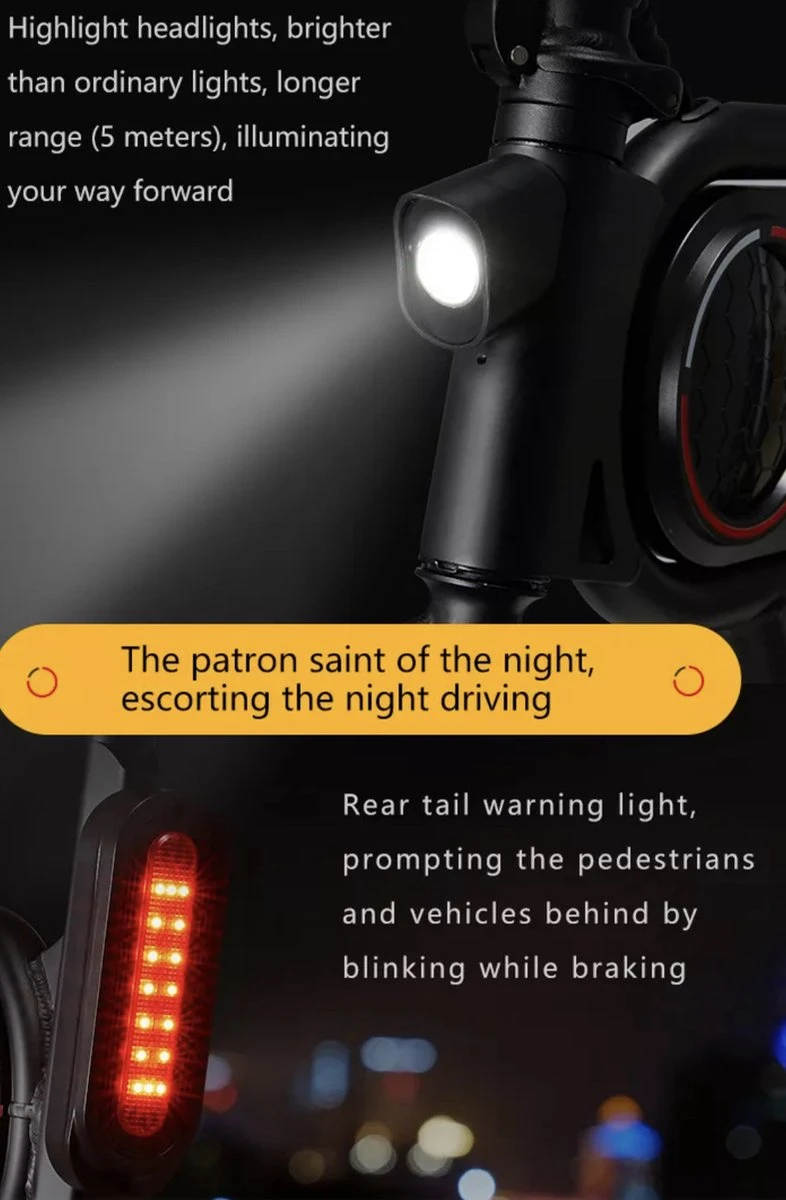 - 【Veilig rijden】B3 heeft een brede frequentie borstelloze motor, kan gemakkelijk klimmen hellingen onder 15 graden, en de maximumsnelheid kan 20 km/u bereiken. Wij bieden enkele referentiegegevens voor u: 70 kg/20 km/h; 85 kg/15 km/h. De B3 beschikt over een dubbel ABS-schijfremsysteem, dat de noodremweg effectief verkortt. Bij nachtritten is de krachtige koplamp van de B3 voldoende om de weg voor je te zien; het achterste waarschuwingslicht voorkomt het oprijden op de achterkant.