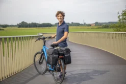 Het is mogelijk om bij deze tas een afstandhouder te gebruiken. Deze voorkomt dat de tas tegen het wiel aan kan komen als de tas zwaar beladen is. Je steekt de afstandhouder in de insteekstrips op de achterkant van de fietstas.
