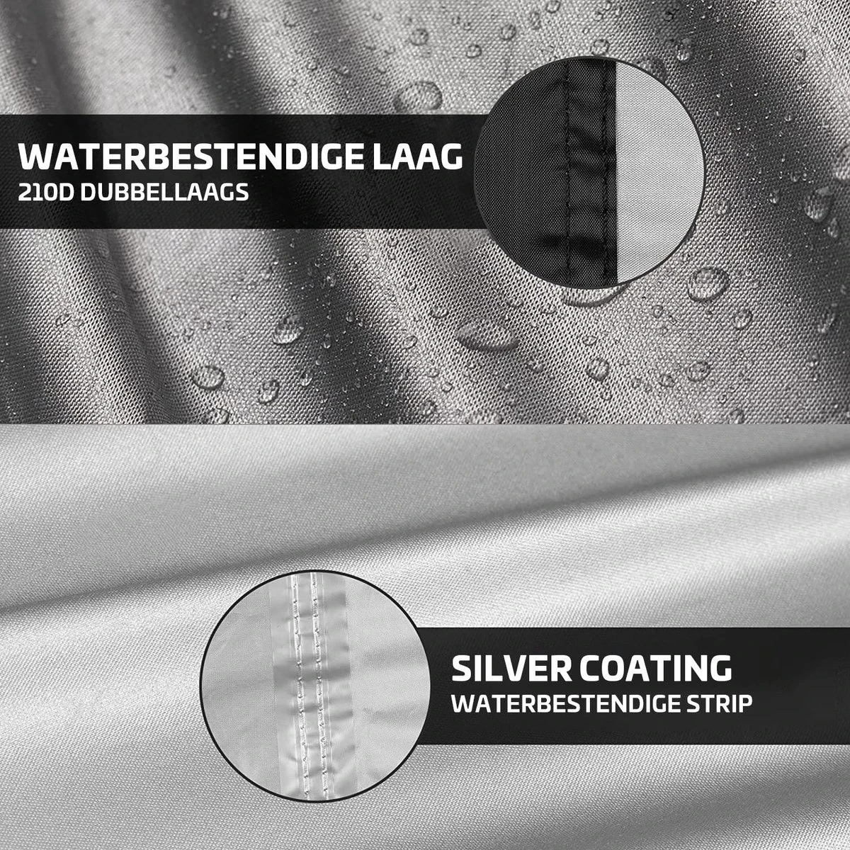 Met de Nince waterbestendige fietshoes voor buiten bescherm jij je fiets(en) eenvoudig tegen stof, vuil, zon, regen, UV en andere verontreinigende stoffen. De fietshoes is gemaakt van hoogwaardig 210D materiaal en is geschikt voor 2 tot 3 (electrische)fietsen. Met de fietshoes houd jij je fiets als nieuw!