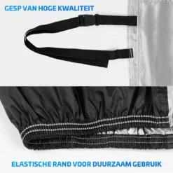 De fietshoes is met elastisch design, wat het gebruik zeer gebruiksvriendelijk maakt. De ‘installatie’ is zeer eenvoudig, werp de fietshoes over je fiets en maak deze met de gesp vast. De afmeting van 208 x 117 x 112cm maakt de hoes geschikt voor de meeste fietsen tot 28 inch wielmaat. Ideaal voor mountainbikes, racefietsen, electrische fietsen en bromfietsen. (bij twijfel graag even je fiets opmeten)