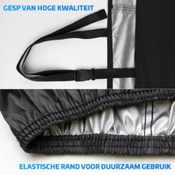 De fietshoes is met elastisch design, wat het gebruik zeer gebruiksvriendelijk maakt. De ‘installatie’ is zeer eenvoudig, werp de fietshoes over je fiets en maak deze met de gesp vast. De afmeting van 208 x 117 x 112cm maakt de hoes geschikt voor de meeste fietsen tot 28 inch wielmaat. Ideaal voor mountainbikes, racefietsen, electrische fietsen en bromfietsen. (bij twijfel graag even je fiets opmeten)