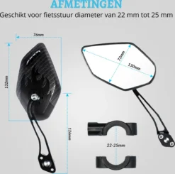 De milieuvriendelijke lange arm van aluminiumlegering zorgt ervoor dat een betere horizon wordt afgedekt voor een duidelijk zicht naar achteren. Geschikt voor fietssturen van 22,2 mm.