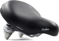 De Selle Royal Drifter Plus. Een zeer comfortabel zadel voor cruiser, speciale fietsen of mensen die graag een zeer breed zadel willen en comfortabel op de plaats van bestemming willen aankomen. De Selle Royal Drifter is verkrijgbaar in verschillende uitvoeringen. De Drifter is een unisex zadel en heeft een relaxed positie. Het zadel is voorzien van een luxe gel vulling voor optimaal comfort. De grote vering aan de achterzijde zorgt voor een goede schokopvanging. De Drifter heeft een strengtex zadeldek wat zorgt voor een extra beschering van het zadel.