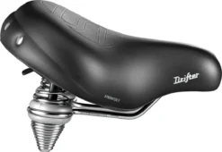 De Drifter is een van de duurzaamste zadels dankzij het speciale materiaal Strengtex, dat beschermt tegen slijtage. De Drifter Strengtex is groot en daardoor geschikt voor een Relaxed fietspositie en is uitgerust met Royalgel technologie en een dubbel veersysteem voor meer comfort. Dankzij zijn unieke, driedimensionale gelstructuur staat Royalgel garant voor het hoogste comfort. Het vermindert de drukpieken namelijk tot maar liefst 40%.