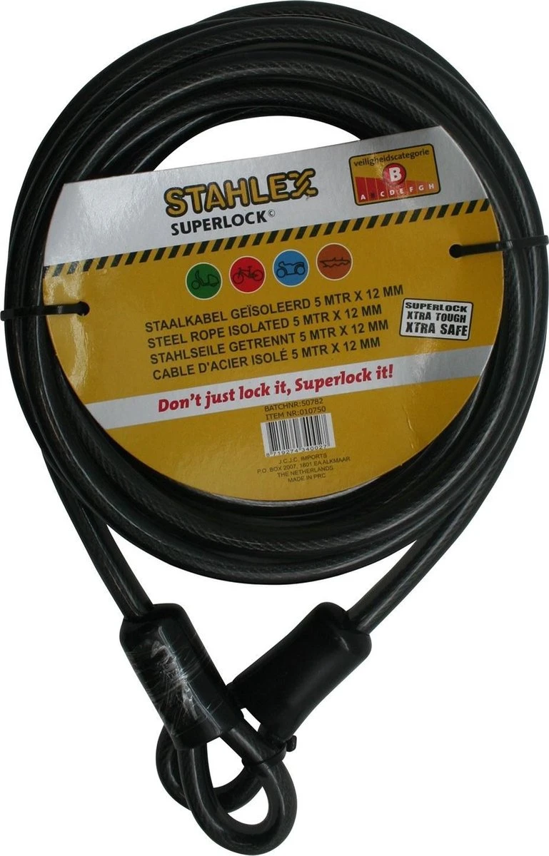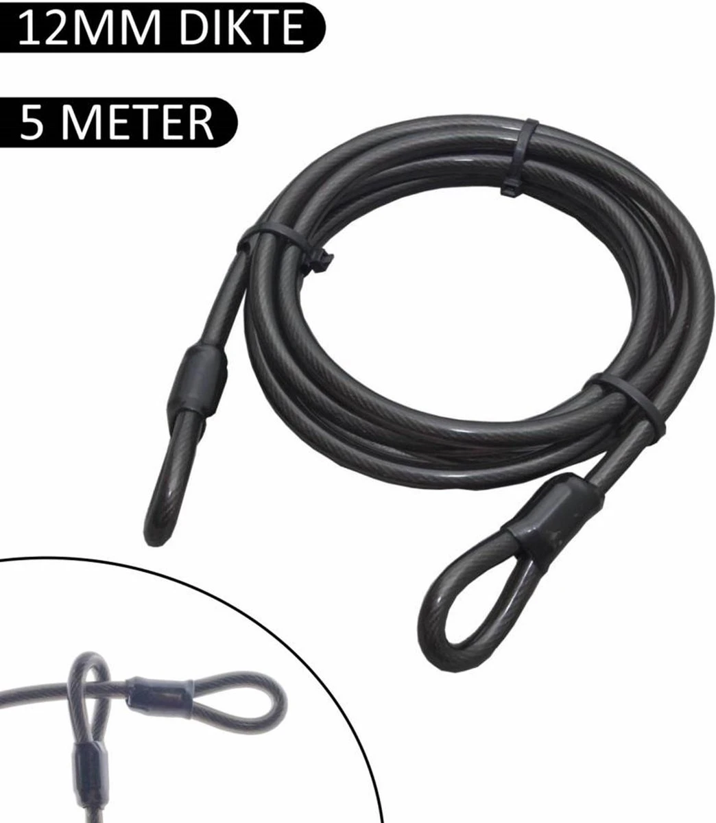 Met 5 meter lengte, kunt u bijvoorbeeld meerdere fietsen ineens vastzetten aan een fietsenrek of buitenmeubels voor een restaurant aan elkaar vastzetten (Beveilig uw restaurant bedrijf tegen diefstal.)