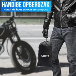De hoes is wind- en waterdicht doordat de binnenzijde gecoat is en de buitenzijde voorzien is van thermisch gelaste naden. Doordat de fietshoes gemaakt is van stevig ultra sterk Oxfordmateriaal kan jouw geliefde rijwiel alle weersomstandigheden aan! Wordt er hagel, sneeuw of regen verwacht? Jouw fiets is veilig. Maar ook beschermt de hoes van Strex jouw fiets tegen de zon, vorst en de wind. Ook bij krachtige stormbuien blijft de fietshoes intact en jouw fiets ongeschonden.