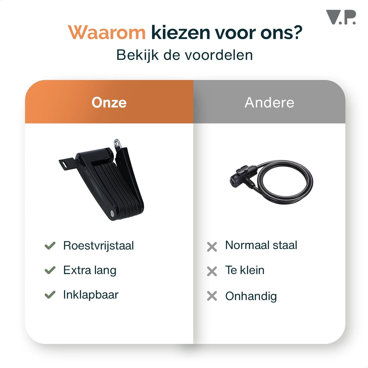 Handig als tweede fietsslot – zet je fiets éxtra goed op slot met het V.P. vouwslot.