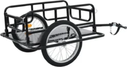 Deze fietskar is zeer stevig en duurzaam dankzij de robuuste stalen frameconstructie. De inklapbare trekstang en inklapbare zijkanten zorgen ervoor dat de kar zeer weinig ruimte in beslag neemt bij opslag en transport. Deze fietstrailer is eenvoudig te monteren.