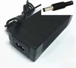 Batterij-lader voor het opladen van Li-Ion accu’s van Vogue fietsen met een dc5.5 -stekker aansluiting, zie foto’s. Met laad-indicatie LED en 4-traps-laadkarakteristiek.
